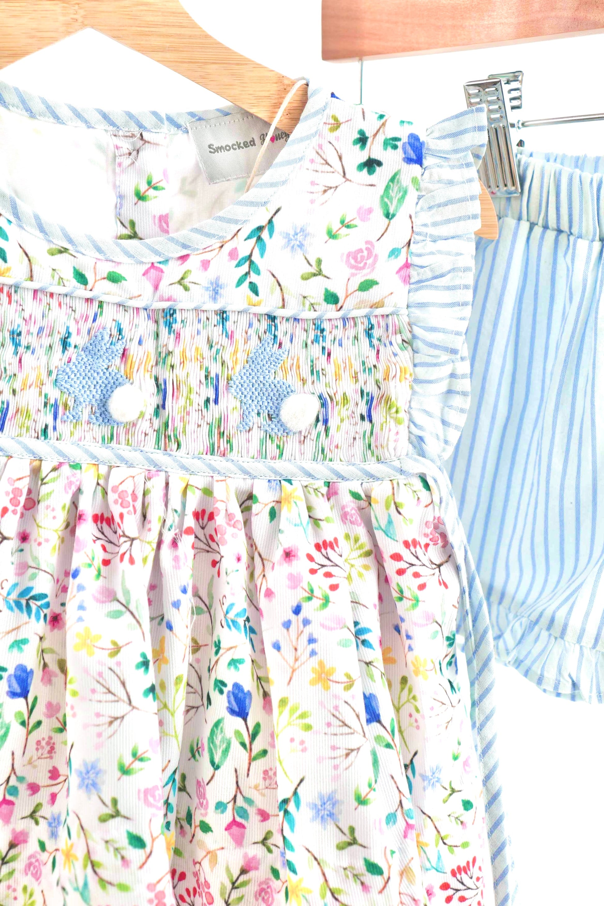 Floral easter bunny hand-smocked girl set