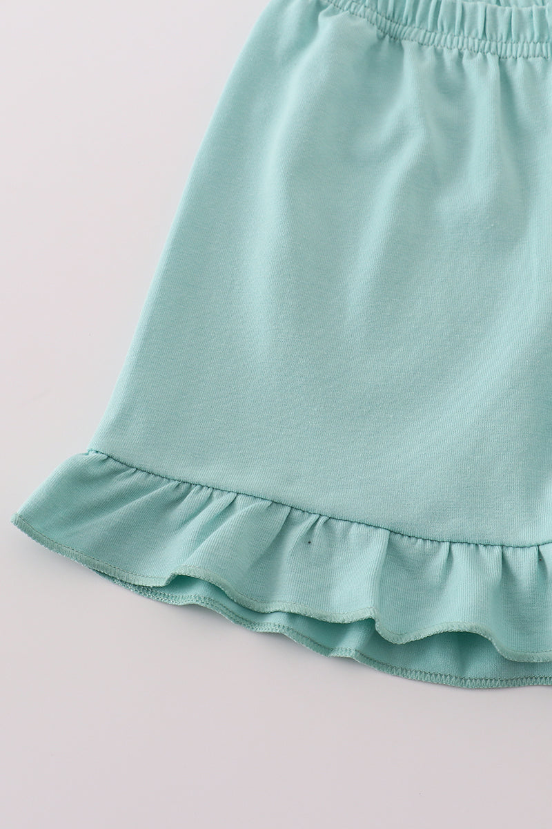 Dress your little one in this adorable green stripe shorts set featuring a playful puppy hunting embroidery design! Perfect for warm weather adventures, this charming outfit combines comfort with whimsical style. Watch as your child bounces around in this delightful ensemble that's as fun as it is functional!