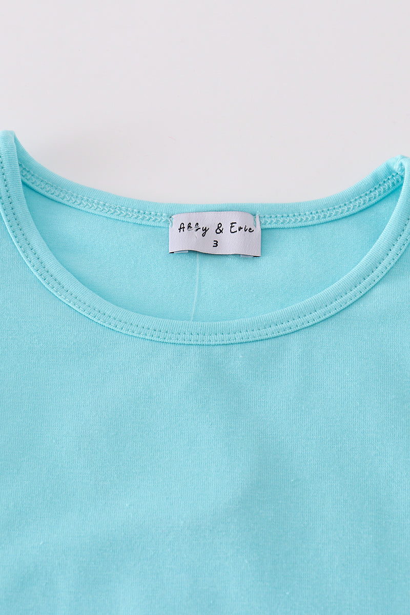 Mint barbie print girl skorts set