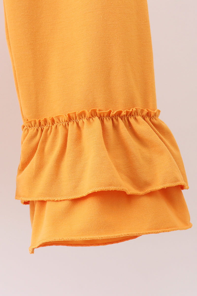 This navy floral smocked ruffle pants set brings a playful twist to your wardrobe with its charming smocked detailing and flirty ruffles. Designed for comfort and style, it’s perfect for twirling through sunny days or adding a splash of fun to any casual occasion. Embrace effortless, cheerful fashion with this delightful set that pairs floral freshness and playful texture seamlessly.