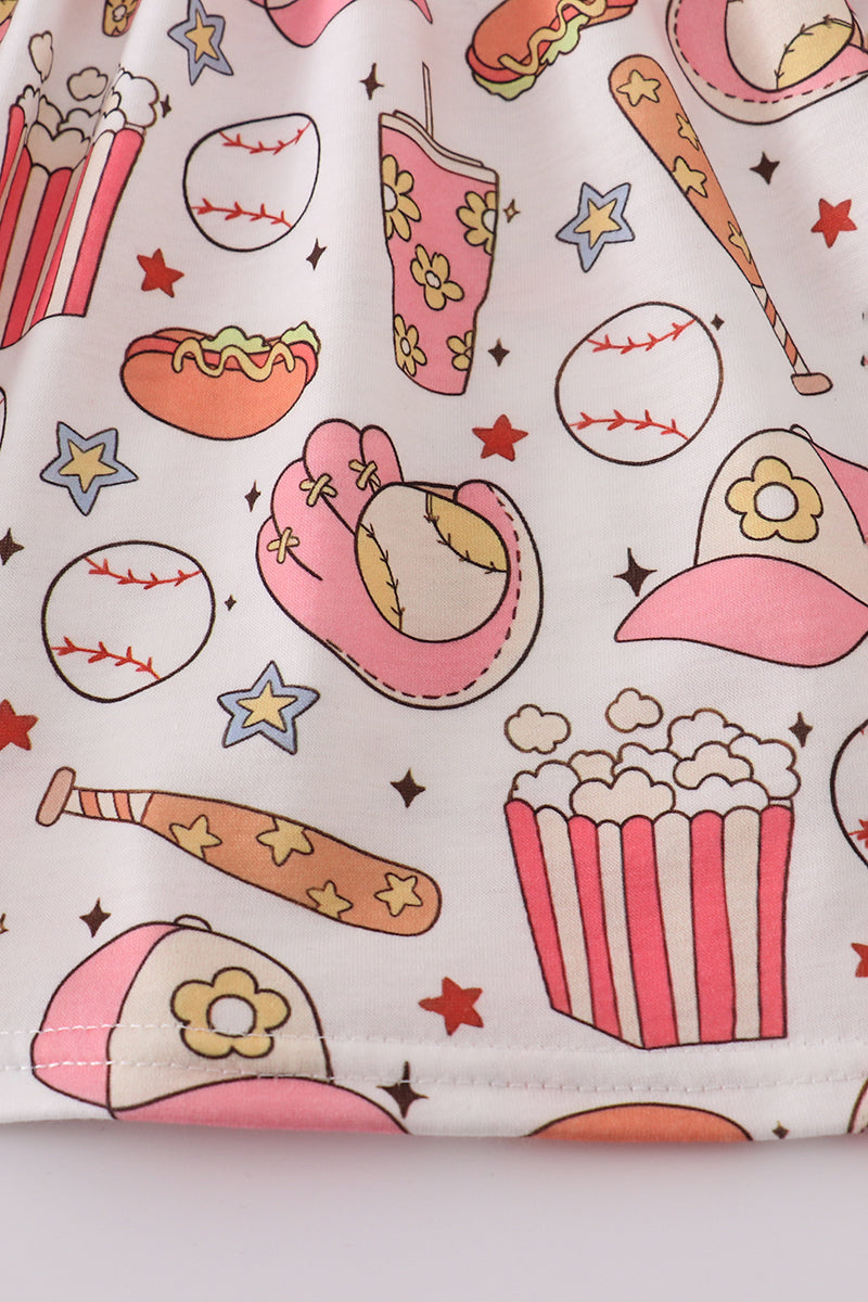 Pink baseball print gingham ruffle shorts set