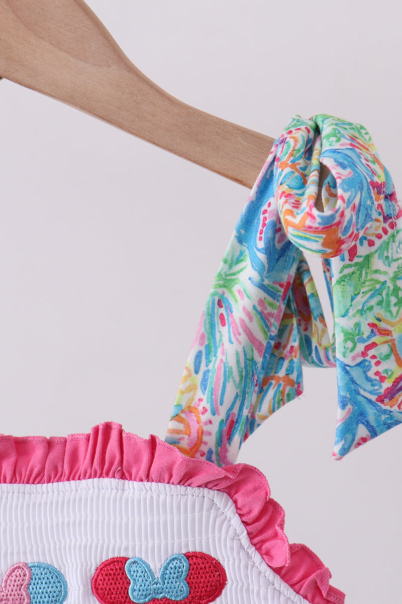 Pink character smocked ruffle dress