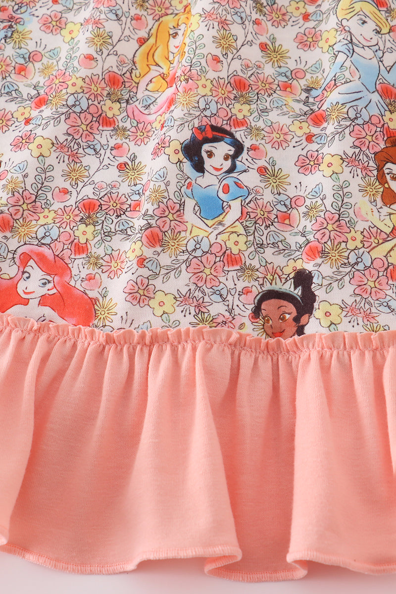 Step into a fairytale with this Princess floral print ruffle gown. Its charming floral pattern and playful ruffles bring a whimsical touch to any occasion. Designed to make you feel like royalty, this gown combines elegance with a fun, flirty vibe perfect for twirling the day away.