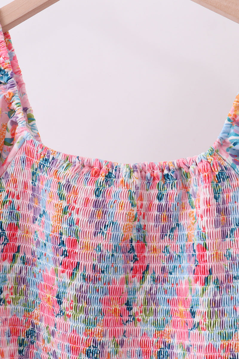 Twirl into spring with this charming purple floral smocked dress! Delicate blooms dance across soft fabric while the smocked bodice creates a flattering, feminine silhouette that moves with you. Perfect for garden parties, weekend brunch, or whenever you want to feel effortlessly put-together. The playful print brings joy to your wardrobe, while the timeless smocking detail adds vintage-inspired elegance. Comfortable, stylish, and utterly delightful.
