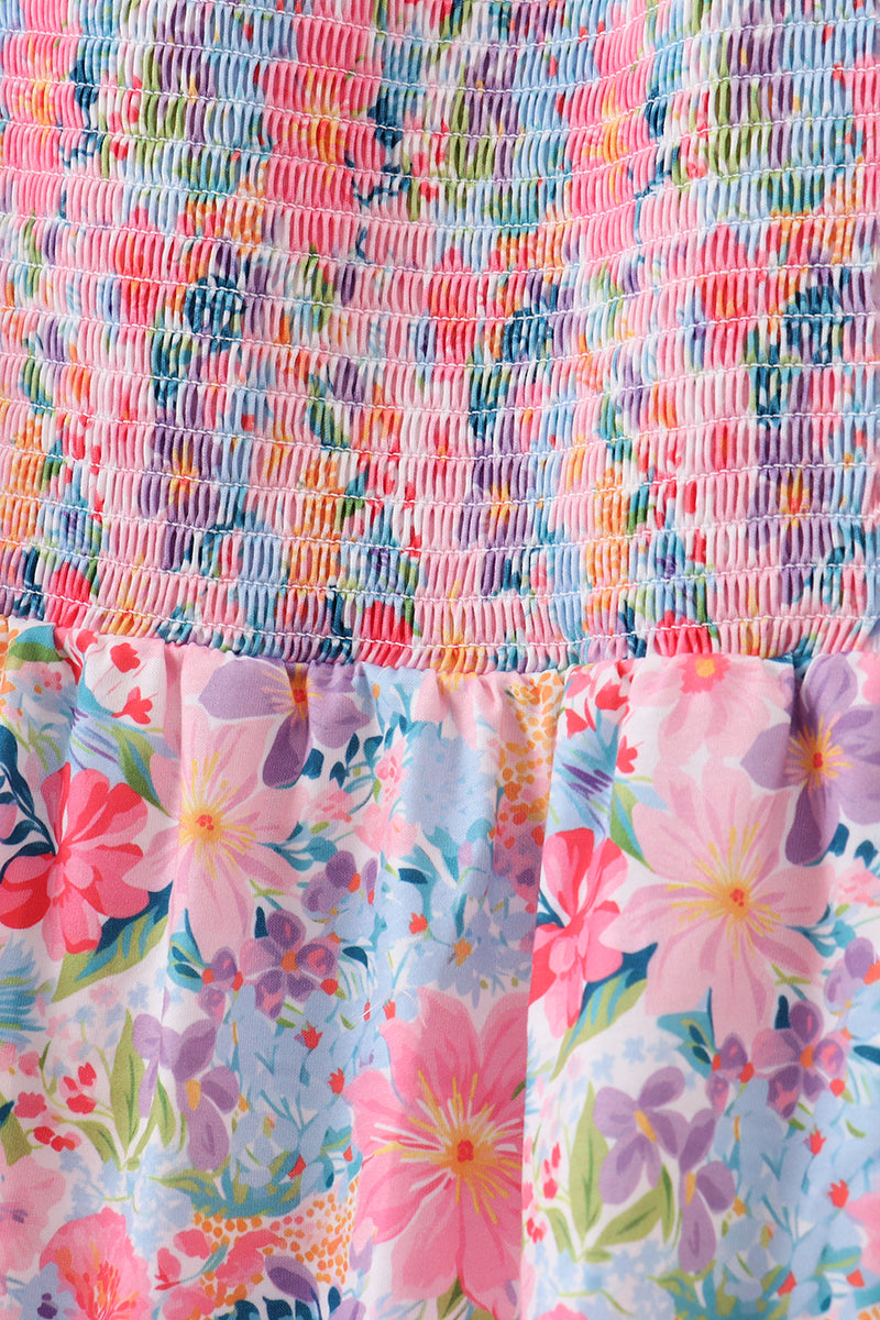 Purple floral smocked women dress